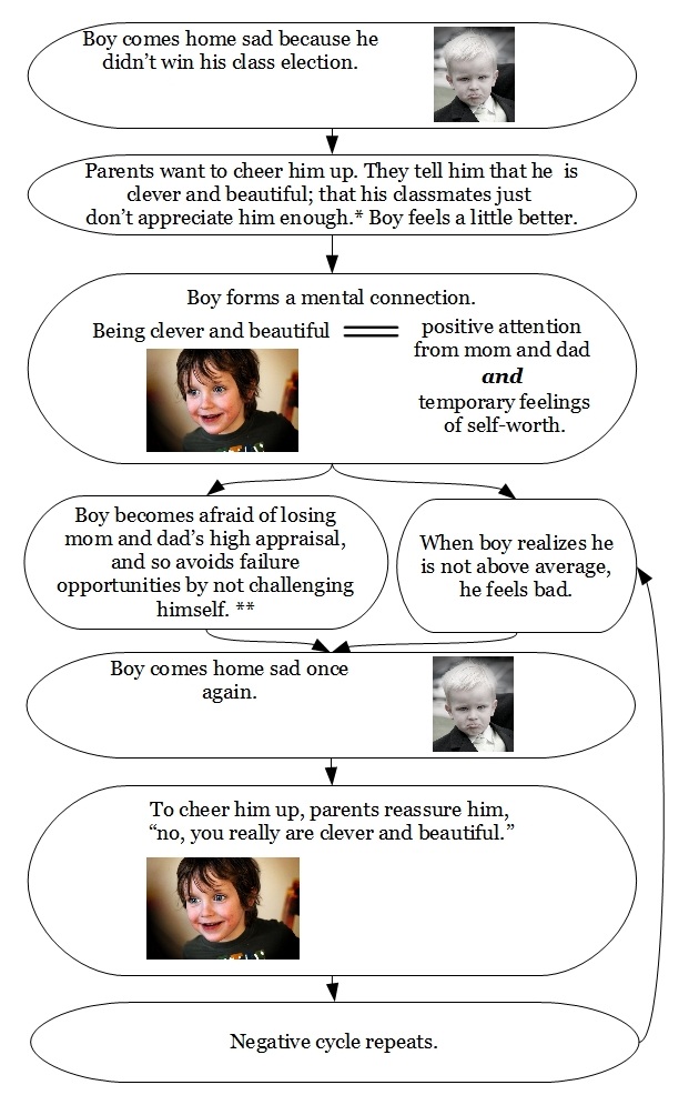 Another potential consequence of excessive, unconditional praise is the tendency to view failure as evidence of stupidity, rather than as a normal human experience. You can read a summary of the research here, or a more in-depth article here.